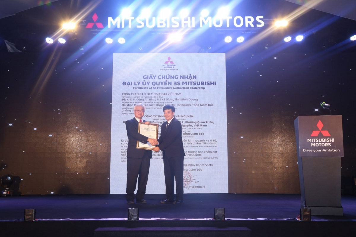 Ông Kenichi Horinouchi – Tổng giám đốc Mitsubishi Motors Việt Nam trao giấy chứng nhận đại lý.