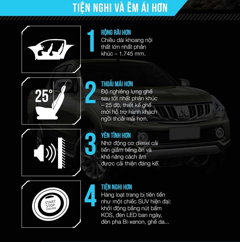 – Động cơ Diesel 2.4L MIVEC đem đến công suất 181PS và mô-men xoắn cực đại 430Nm